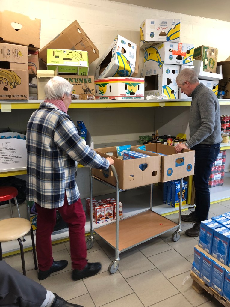 - UNE PERMANENCE CHAQUE VENDREDI DE 13H30 A 15H45, 187 RUE DE BASTOGNE au cours de laquelle les bénévoles distribuent des colis de vivre à une cinquantaine de familles. Ces vivres proviennent de la Banque Alimentaire; d’achats effectués en grandes surfaces, de l’opération Arc-en-Ciel, de dons privés.