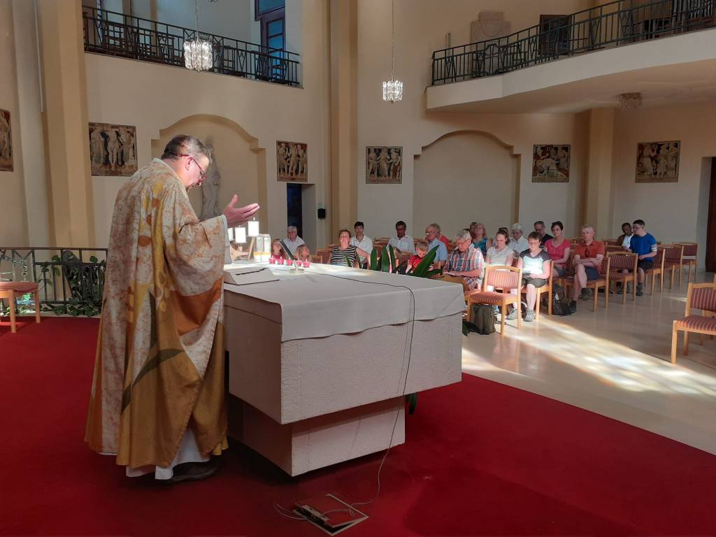 Ce dimanche 11 juin 2023 fut particulièrement riche en événements (Solennité du Saint-Sacrement dans l’U.P, Fête Dieu à Waltzing, fête des pères en Belgique). L’Unité Pastorale Notre-Dame d’Arlon proposait, en outre, à tous ses paroissiens de participer à une « balade eucharistique » sur le domaine de Clairefontaine. L’idée était de prendre le temps de vivre toute la « montée » du célébration eucharistique dans le cadre de la création, proche de la nature, en Église, corps du Christ. L’apogée de l’après-midi s’est déroulée dans la chapelle de Clairefontaine. Les participants sont repartis unanimement heureux et rechargés de l’énergie que cette balade eucharistique avait prodiguée. Un merci à toutes et à tous mais tout particulièrement à Mr le doyen, Pascal ROGER, qui avait préparé avec passion et foi le déroulé de cette eucharistie … ressourçante!