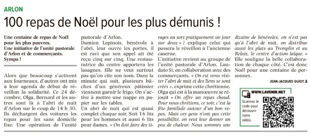 Pour la Saint Vincent de Paul d’Arlon (collectes aux messes de Noël) qui fournit aide alimentaire et aide financière (frais d’énergie, de soins médicaux …) à de nombreuses familles en difficulté.