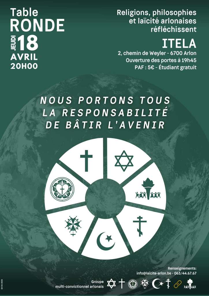 Le groupe multi-convictionnel arlonais, rassemble les représentants des cultes israélite, catholique, protestant, musulman, orthodoxe ainsi que des représentants de la Laïcité. Il organise chaque année divers événements, dont la fête nationale le 21 juillet et la fête du Roi le 15 novembre. Il propose également des conférences-débats favorisant les échanges d’idées, telle que la table ronde prévue le 18 avril prochain.