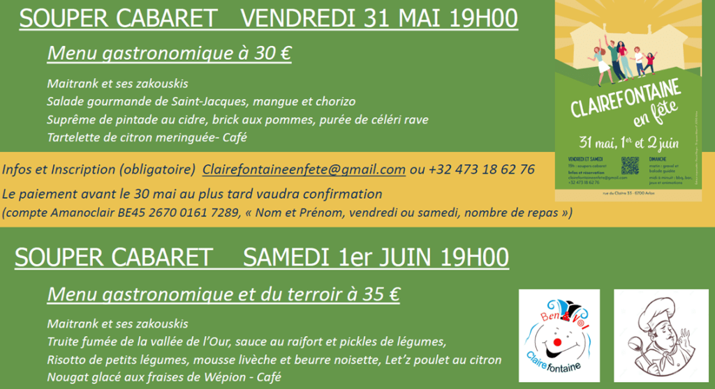 Adresse e-mail pour réservation aux soirées cabaret : Cliquez ici