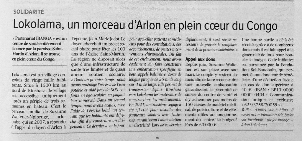 Suivi du Projet : Pour suivre l’avancée du projet et obtenir plus d’informations, consultez notre site : arlon-lokolama-rdc.be.