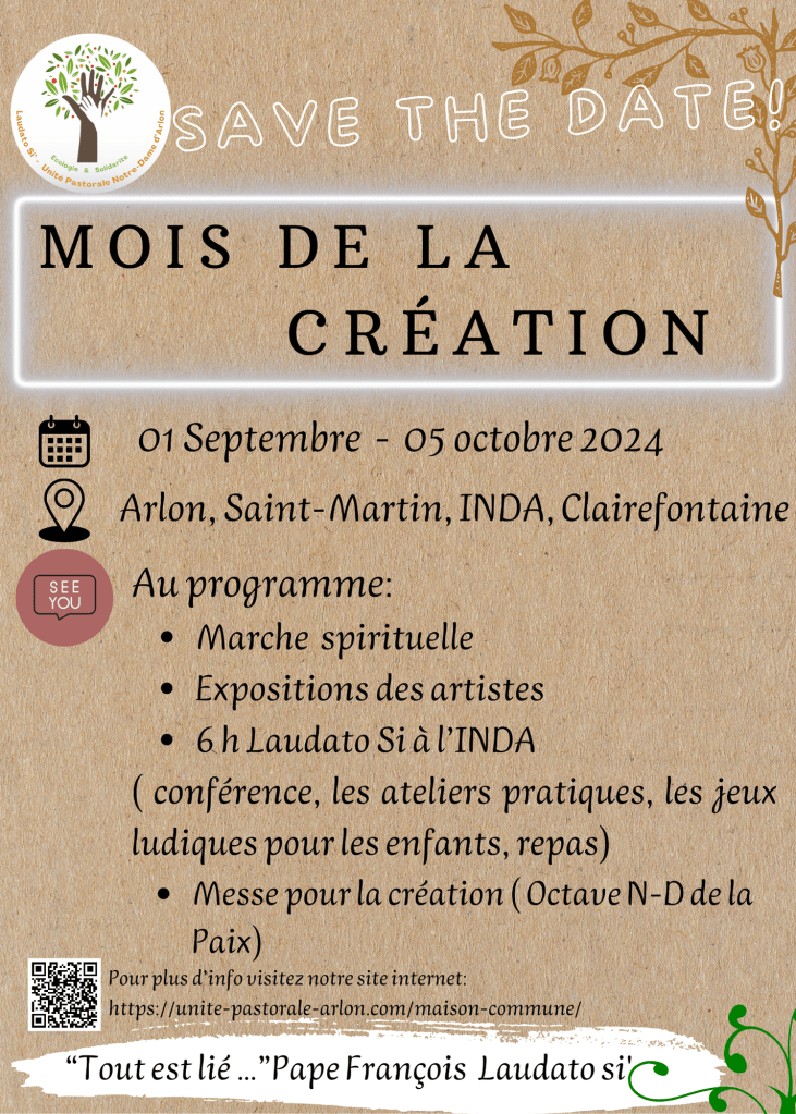 Nous aborderons le thème de cette année « Espérer et agir avec la création » sous différents angles pour que chacun et chacune puissent trouver sa place et son bonheur.