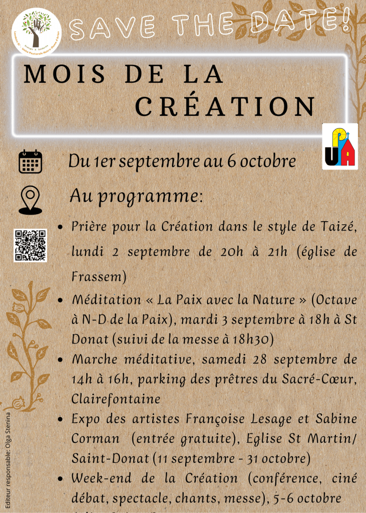 Pour ce Temps de la Création l’équipe Laudato Si de l’Unité pastorale Notre-Dame d’Arlon vous propose les différentes activités intéressantes pour les petits et les grands !
