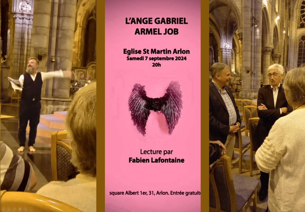 Un beau moment que celui de la représentation du monologue ‘l’ange Gabriel’ d’Armel Job par Fabien Lafontaine ce samedi 7 septembre 2024 à St-Martin dans le cadre des journées du patrimoine. Un texte d’une grande réflexion sur Dieu, la Création, l’homme. Une mise en scène vivante et avec un brin d’humour bien appréciés par le public.
