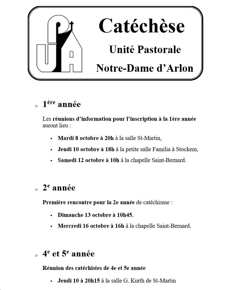 Nous recherchons encore 2 catéchistes pour accompagner des groupes vers la 1ère communion à Saint-Bernard et à Saint-Martin. Il s’agit de 3 rencontres en équipe et 3 rencontres communes. Si vous êtes intéressés, n’hésitez pas à nous rejoindre !