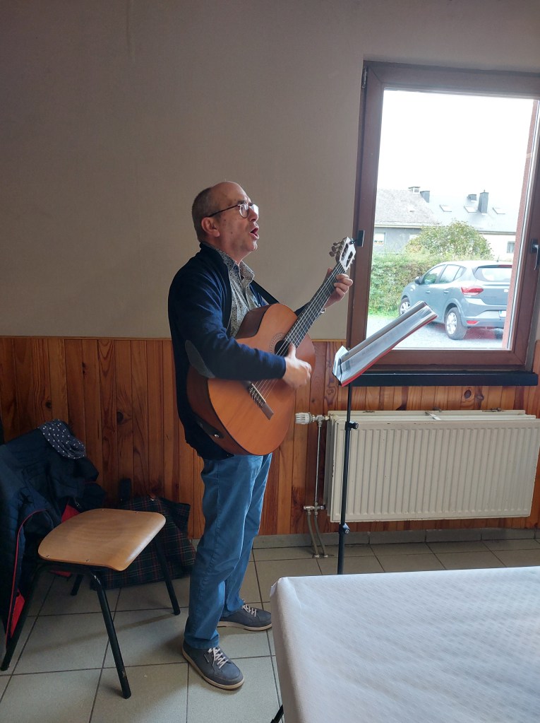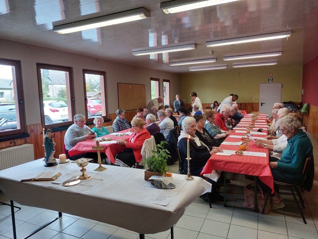 - L’après-midi a été marquée par une messe joyeuse, animée avec enthousiasme par Philippe Crochet et sa guitare. Tous ont chanté d’une seule voix, créant une ambiance teintée de joie et de recueillement.