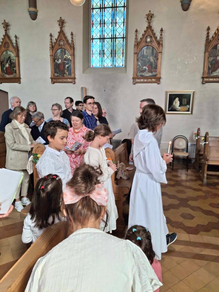 La communauté de Heinsch a vécu un moment exceptionnel le dimanche 11 mai à l’occasion de la célébration des premières communions. Deux enfants ont communié pour la première fois, et deux baptêmes ont également été célébrés. L’église était bien remplie, dans une ambiance chaleureuse et recueillie, mais sans débordement. On note une très bonne participation des parents, notamment pour les lectures, ce qui a contribué à la beauté et à l’implication communautaire dans la célébration. Une prière particulière a été dite pour les mamans à l’occasion de la fête des mères, ajoutant une touche d’attention et d’émotion à ce moment liturgique.