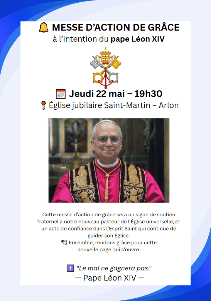 🙏 À l’occasion de l’élection du pape Léon XIV, nous vous invitons à une messe d’action de grâce,
