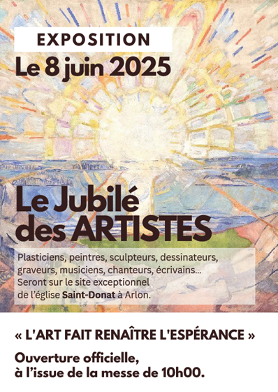 10h : MESSE DES ARTISTES avec la participation d’Armel JOB, Philippe HENRI, Philippe CROCHET à la guitare, Aubain CONDAMINE, François LEVAQUE et la chorale paroissiale, Jean-Marie BOSSELER, à l’orgue, Xavier HAINAUT à la trompette…