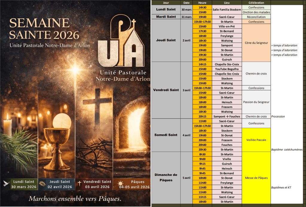 Programme de votre Semaine Sainte 2026 Le 10 Mar 2026 par Boguifra Mediadans Célébrations, Festivités, Sacrements Partager : Partager sur X(ouvre dans une nouvelle fenêtre) X Partager sur Facebook(ouvre dans une nouvelle fenêtre) Facebook J’aime chargement… Similaire