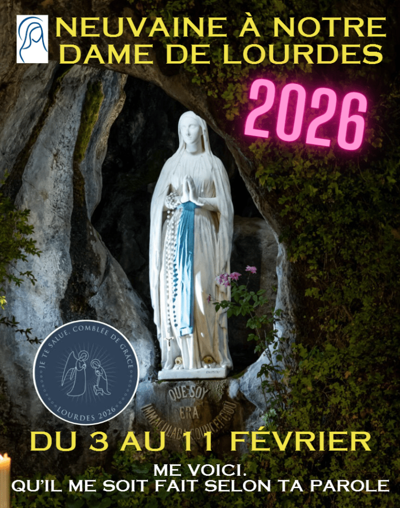 Comme chaque année, du 3 au 11 février, nous aurons le bonheur de vivre ensemble la neuvaine à Notre-Dame de Lourdes. Le thème de cette année : « ME VOICI. QU’IL ME SOIT FAIT SELON TA PAROLE »